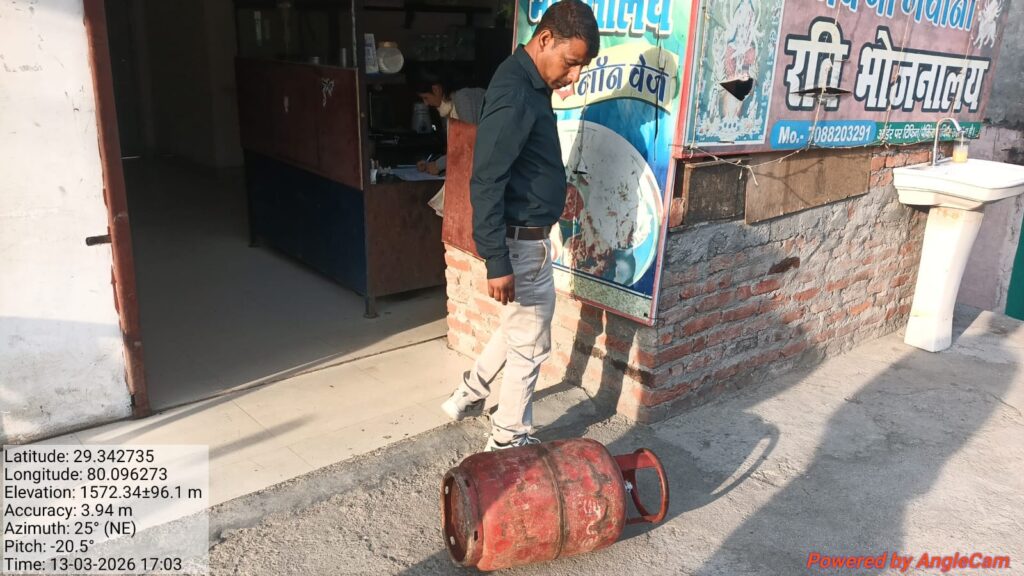 जनपद में घरेलू गैस सिलेंडरों के अवैध व्यावसायिक उपयोग तथा कालाबाजारी पर रोक लगाने के लिए जिला प्रशासन ने सख्त रुख अपनाया है। जिलाधिकारी श्री मनीष कुमार के निर्देशों के अनुपालन में शुक्रवार को तहसीलदार चम्पावत श्री बृजमोहन आर्या के नेतृत्व में पूर्ति विभाग एवं राजस्व विभाग की संयुक्त टीम द्वारा चम्पावत मुख्य बाज़ार क्षेत्र में विभिन्न व्यावसायिक प्रतिष्ठानों—होटल, रेस्टोरेंट एवं ढाबों—पर औचक छापेमारी की गई।