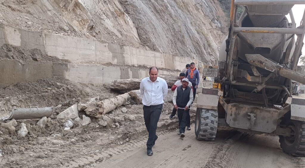 जिलाधिकारी श्री मनीष कुमार ने निर्माण कार्य में तकनीकी मानकों, गुणवत्ता और सुरक्षा नियमों का पूर्ण अनुपालन सुनिश्चित करने, हिल साइड में बैंच कटिंग तथा डाउनसाइड में सुरक्षा दीवार (सेफ्टी वॉल) के निर्माण कार्य में तेजी लाने के निर्देश दिए ताकि सड़क की स्थिरता और यात्रियों की सुरक्षा सुनिश्चित की जा सके।