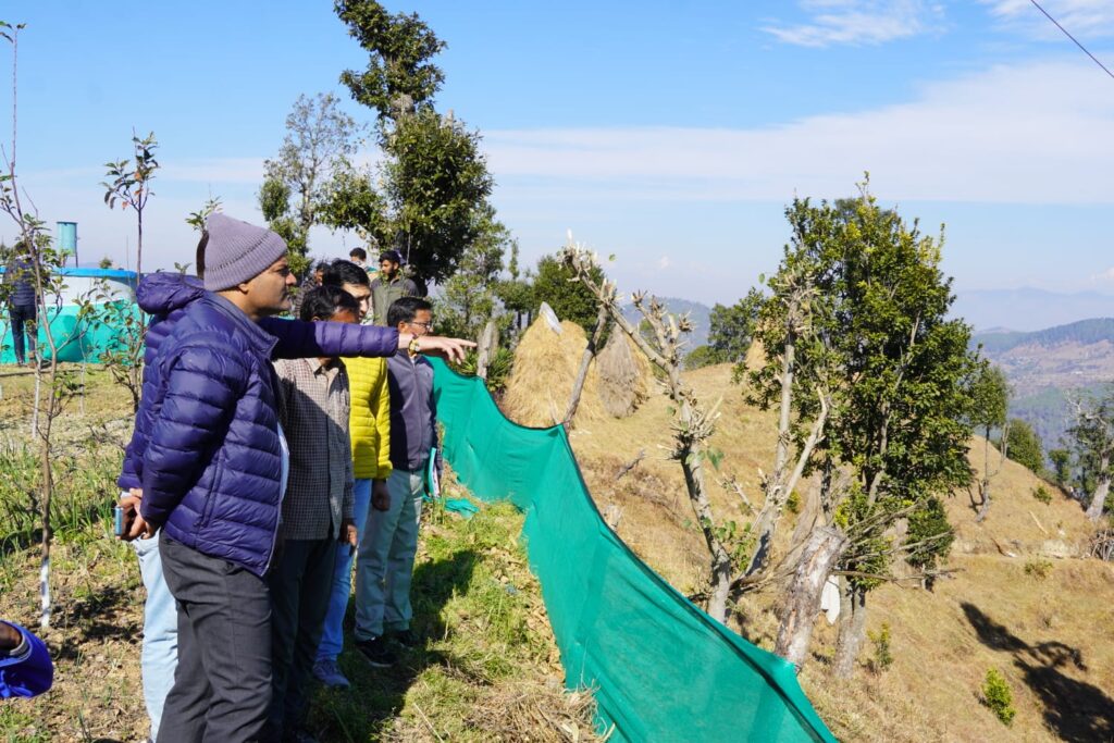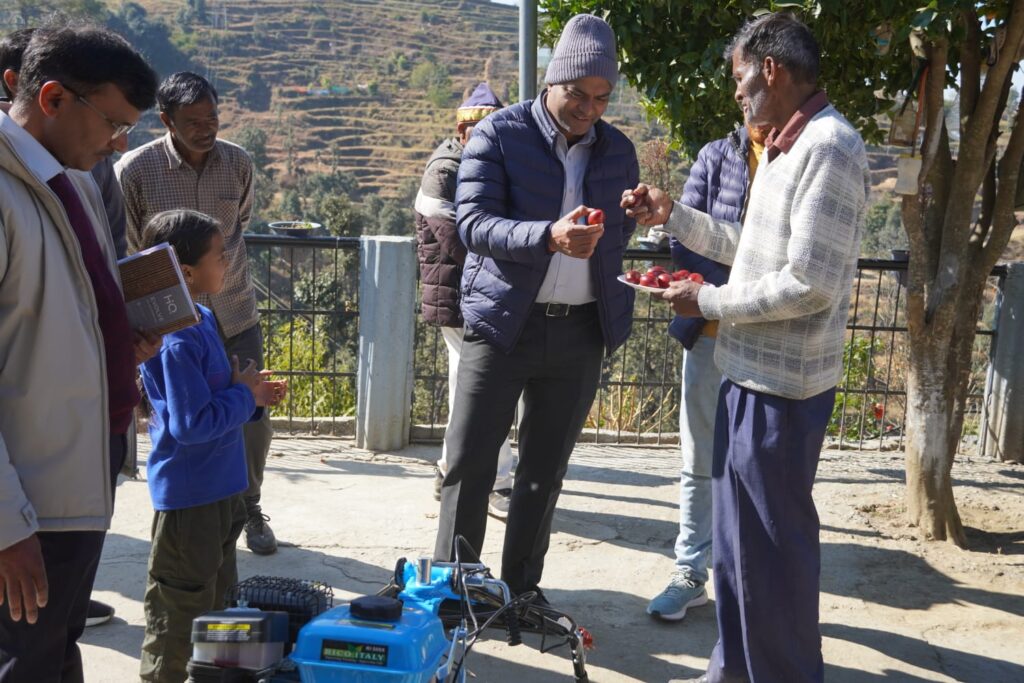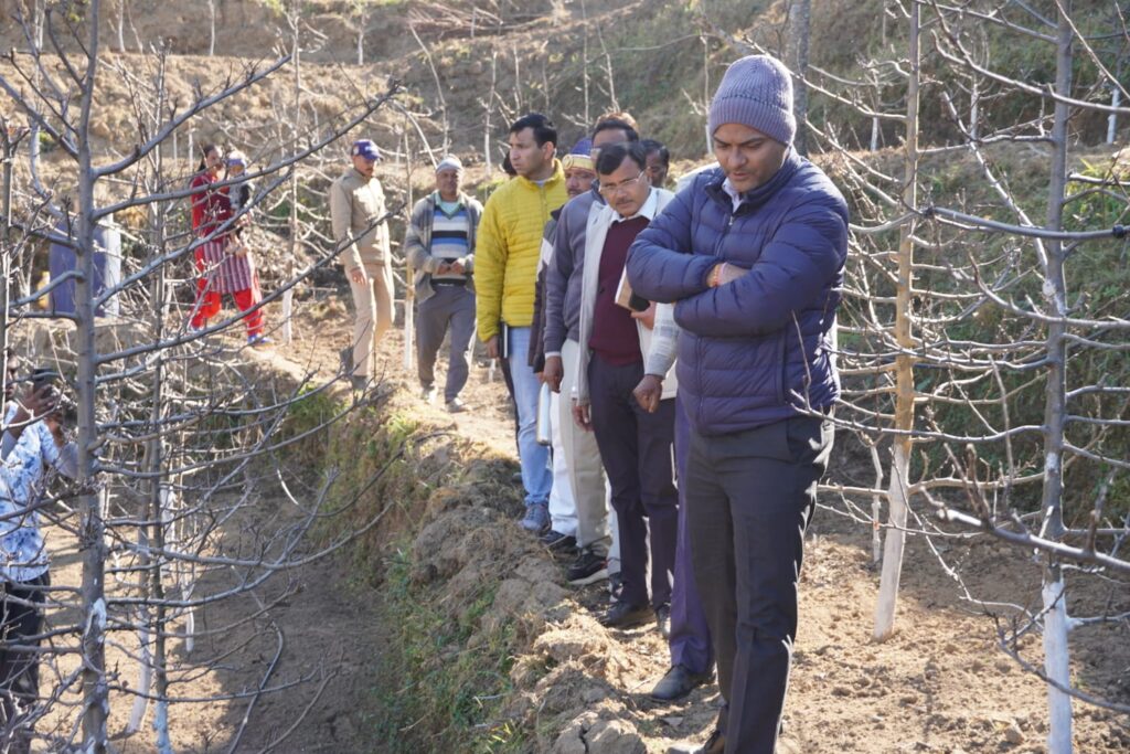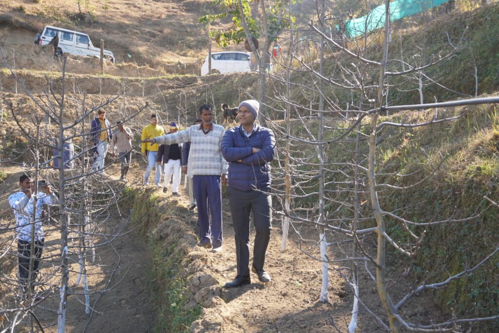 सेब और पर्सिम्मन की खेती के लिए भीम सिंह महर के खेत पहुंचे जिलाधिकारी