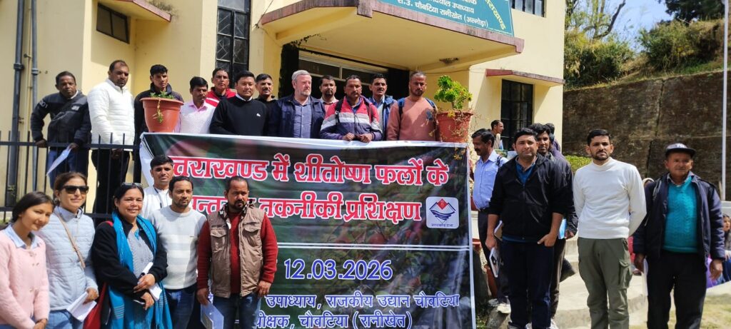 12 मार्च 2026 को निदेशालय चौबटिया में सेब की प्रूनिंग एवं प्रशिक्षण से संबंधित एक विशेष प्रशिक्षण कार्यक्रम आयोजित किया गया, जिसमें जनपद चम्पावत के काश्तकारों ने उत्साहपूर्वक प्रतिभाग किया।