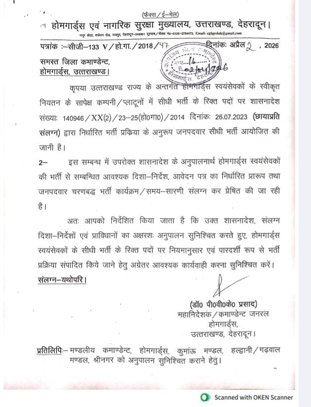 मुख्यालय की ओर से स्पष्ट किया गया है कि भर्ती प्रक्रिया के लिए आवश्यक दिशा-निर्देश, आवेदन पत्र का प्रारूप और समय-सारणी संबंधित जनपदों को भेज दी गई है। सभी अधिकारियों को निर्देश दिए गए हैं कि वे शासनादेश का अक्षरशः पालन करते हुए भर्ती प्रक्रिया को पारदर्शी और निष्पक्ष तरीके से संपन्न कराएं।
