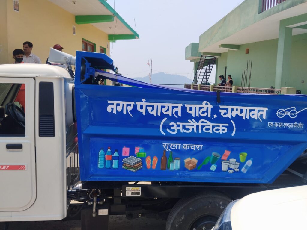जनपद चंपावत में स्वच्छता व्यवस्था को और अधिक सुदृढ़ बनाने की दिशा में एक महत्वपूर्ण पहल करते हुए जिलाधिकारी श्री मनीष कुमार के मार्गदर्शन में शुक्रवार को नगर पंचायत पाटी में ब्लॉक प्रमुख शंकर अधिकारी एवं उप जिलाधिकारी नीतू डांगर ने नवीन कूड़ा वाहन को हरी झंडी दिखाकर क्षेत्र में सेवा हेतु रवाना किया गया।