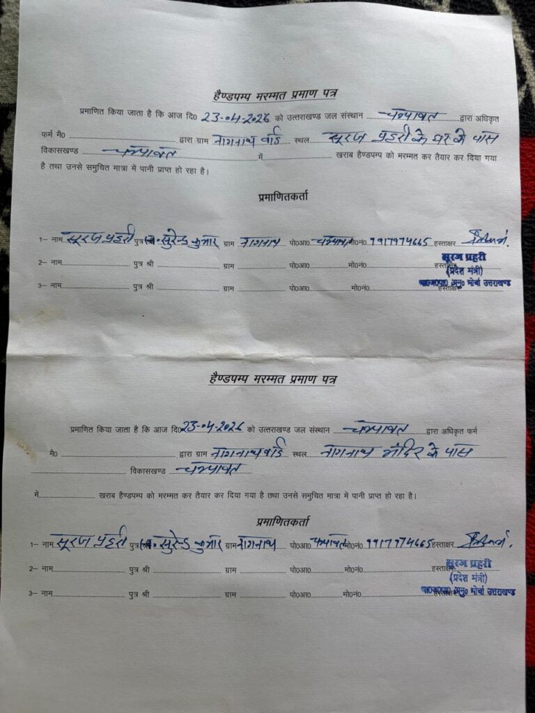 चम्पावत: पिछली बरसात से खराब पड़ा हैंडपंप आखिरकार ठीक कर दिया गया है, जिससे स्थानीय लोगों को बड़ी राहत मिली है। हैंडपंप लंबे समय से जर्जर हालत में था और इसकी सूचना पहले ही जल संस्थान को दे दी गई थी।